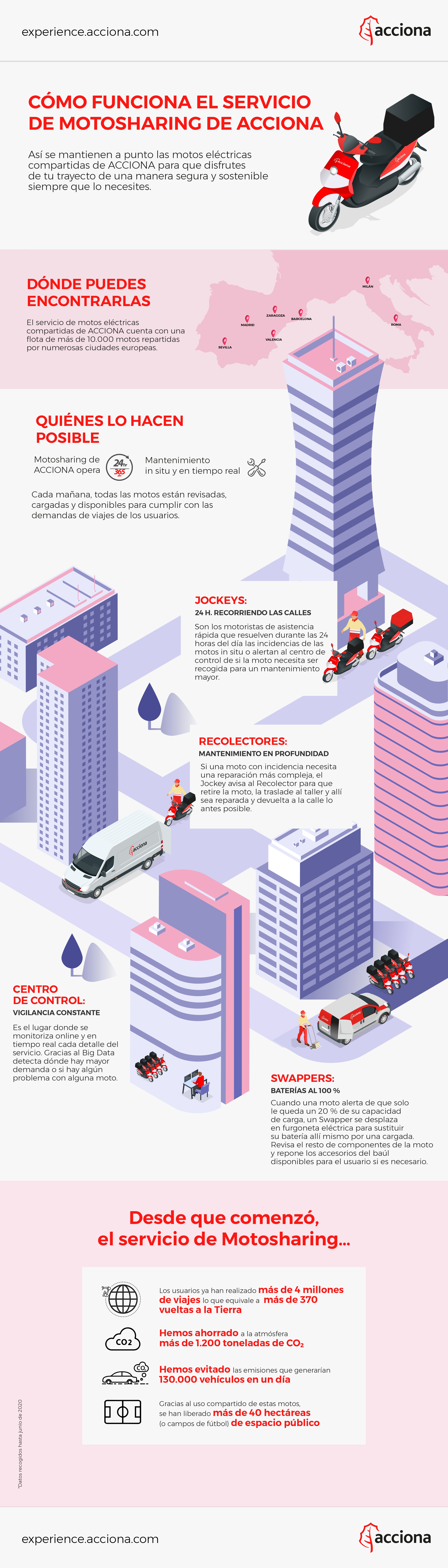 ACCIONA es el mayor operador mundial de Motosharing, con una flota de más de 10.000 motos repartidas por varias ciudades europeas, como Madrid, Barcelona, Roma o Milán.