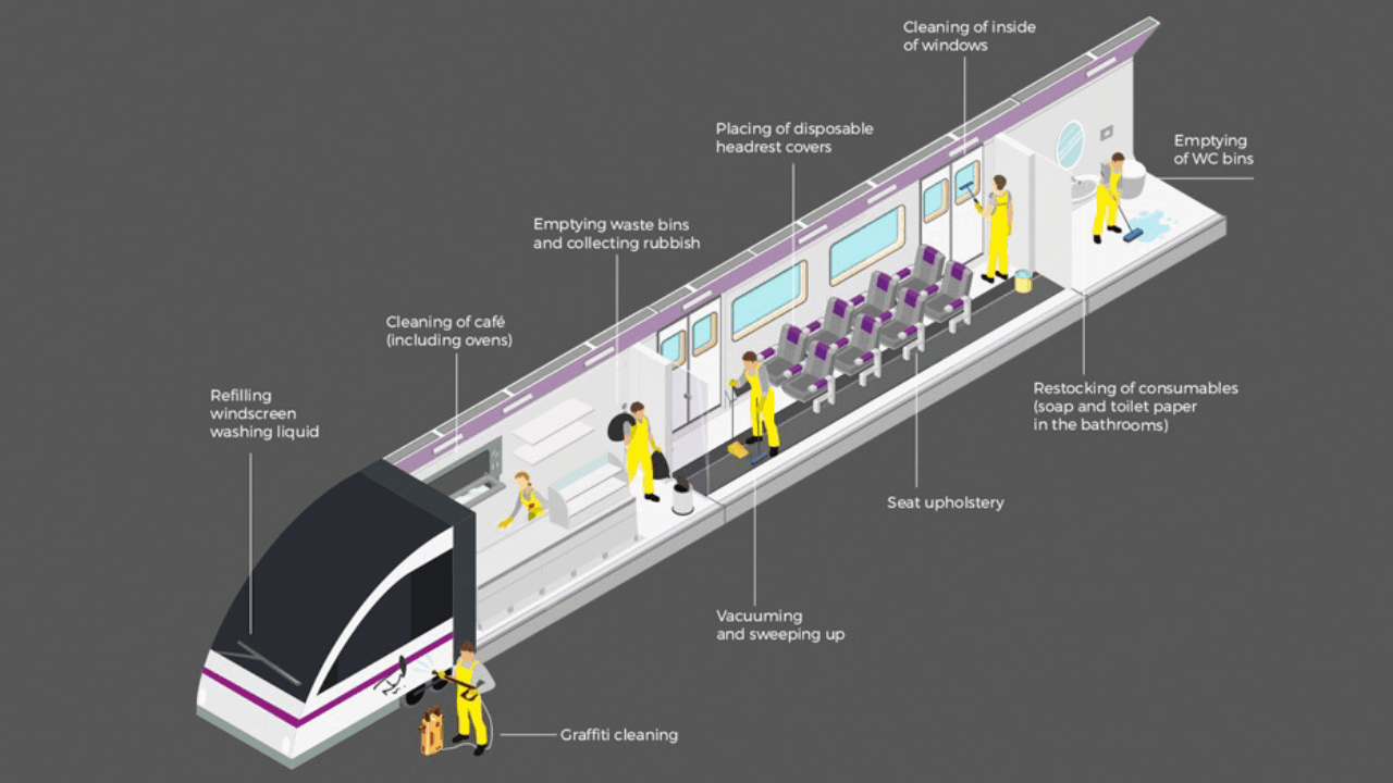 In stations, the cleaning is performed by highly-organised teams that give the trains a general spruce in the few minutes they are stationary.